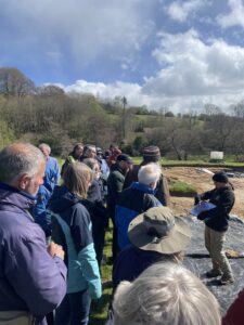 On a bright, if blustery, April morning Simon Greenslade and his team from The Halewell Archaeology Project took 26 GlosArch members on a tour of the excavations they are undertaking in a quiet valley outside Withington, Gloucestershire. They are excavating a large Roman villa, which turns out to be the one described by Samuel Lysons in 1811. The Orpheus mosaic he discovered is now in the British Museum. In 2006, Time Team also excavated a villa in a field adjacent to the current dig and decided it was Lysons’ villa. However, evidence from the the current excavation indicates that this one is the villa excavated in 1811. It is a sizeable residence with some surviving mosaics, a bath house and several phases of building. Work is still on-going.